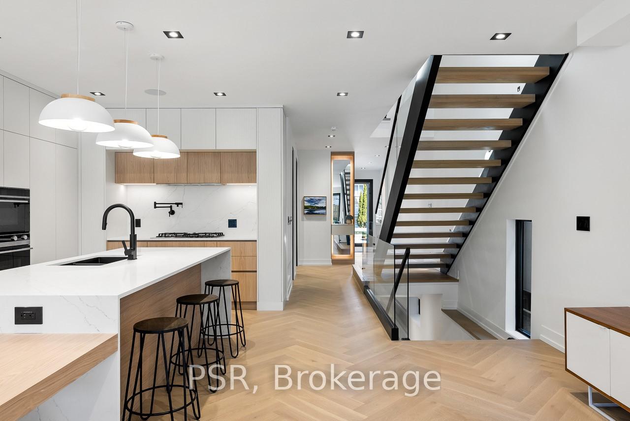 Architecture & Design At Its Finest With This Oversized "Not So Semi" Port Credit Gem; The Largest On The Street Offering Over 4,300 sq. ft. Of Total Space. Dripping with style & functionality & Loaded With Millwork Bonuses At Every Turn. This impressive home Is A Loft-like Airy & Bright Sanctuary With 12ft. Sloped Ceilings (Upper Level) - 9ft. Main & Lower. White Oak Harringbone-Laid Flooring, Walk-In Closets & Organizers Throughout. 245 sq. ft. Covered/Cladded Terrace Walking Down To A Large Stone Patio & Fully fenced Pool-Sized yard That Goes On For Days! Wide Single Attached Garage W EV Charger Rough-In; Walk-In To Proper Mudroom. 8ft Solid Core Interior Doors. Heated Basement Floors. A Rare Level Of Overall Quality & Design. Prime Location On A Quiet Street Near The Lake & Walking Distance To "Brightwater"; A Master Planned Community On The Waterfront Offering 300,000 sq. ft. Of Exciting Brand New Retail & Amenities To Come.